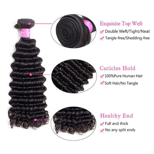 ORIGINAL QUEEN 8A Grade Brazilian Deep Wave 3 or 4 Bundles Natual Color 8-28inches